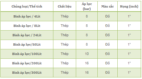 Đặc tính sản phẩm của Bình áp lực,bình tích áp
