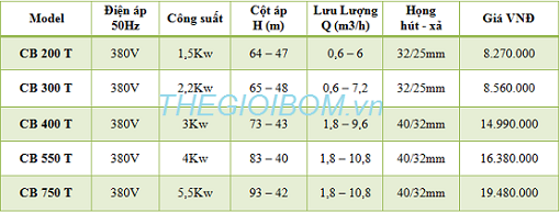 Bơm ly tâm Stac CB - Series đặt cạn 2 tầng cánh (vỏ gang) (cánh đồng )