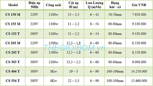THÔNG SỐ KỸ THUẬT ĐẦU BƠM