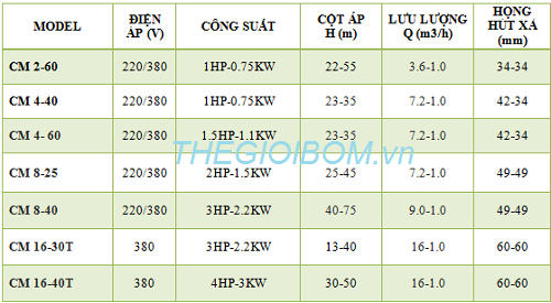 Đặt tính sản phẩm của Máy bơm trục ngang đa tầng cánh Ewara CM Series