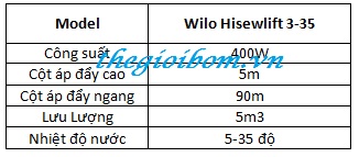 Tính năng nổi bật của Máy bơm Wilo Hisewlift 3-35