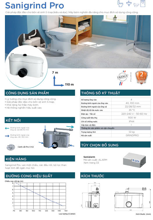 Máy bơm trực tiếp bồn cầu Saniaccess