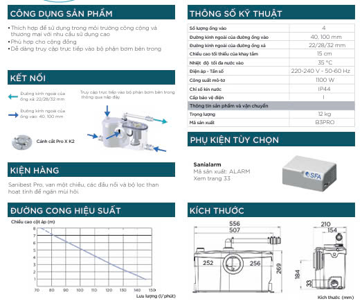 Máy bơm trực tiếp bồn cầu SANIBEST PRO