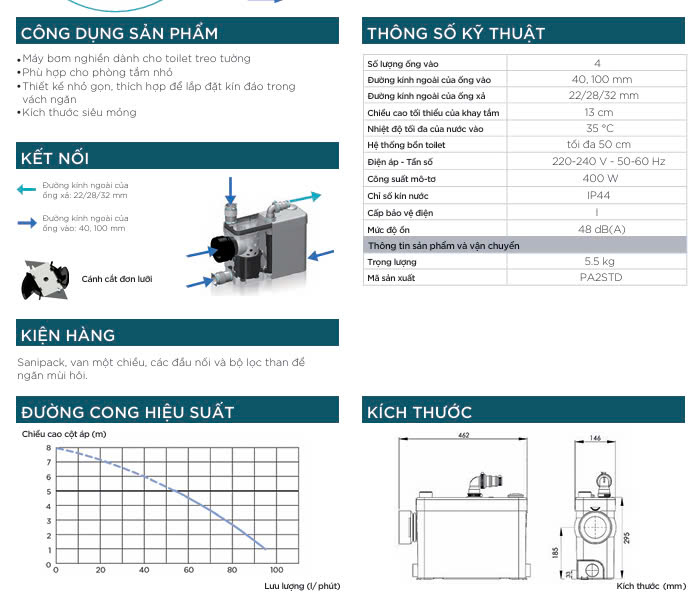 Máy bơm trực tiếp bồn cầu Sanipack