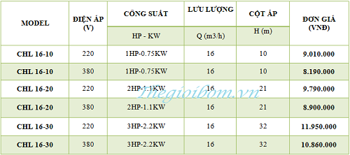 Máy Bơm trục ngang đa cấp CNP - CHL 16 Series