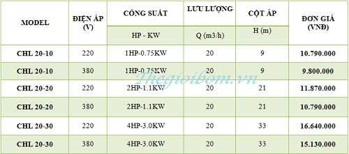 Máy Bơm trục ngang đa cấp CNP - CHL 20 Series