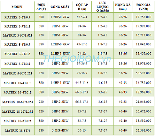 Máy bơm trục ngang đa cấp Ebara Matrix Series