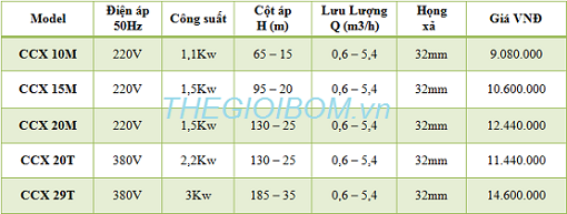 THÔNG SỐ KỸ THUẬT ĐẦU BƠM: