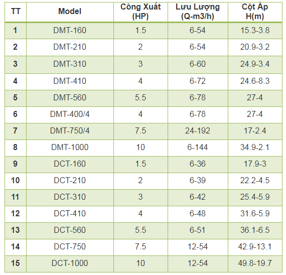 Đặc tính sản phẩm của Máy bơm chìm công nghiệp Pentax DMT-DCT Series