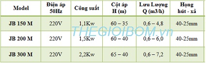 THÔNG SỐ KỸ THUẬT ĐẦU BƠM