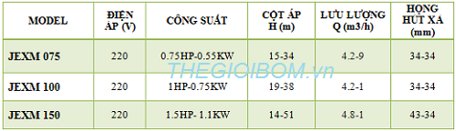 Đặt tính sản phẩm của Máy bơm ly tâm đầu inox Ewara-JEXM Series