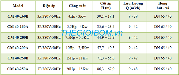 Đặc tính sản phẩm của Máy bơm công nghiệp Master CM 40- Series