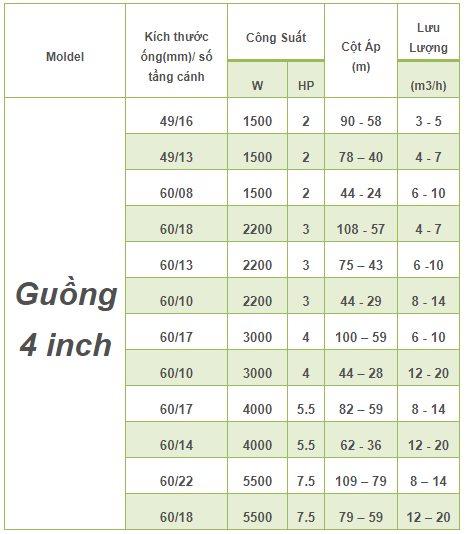 - Thiết kế đa tầng cánh giúp đẩy nước cao, lưu lượng nước lớn.