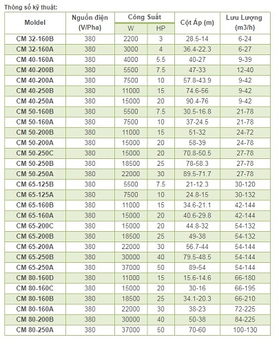Đặc tính sản phẩm của Máy bơm công nghiệp Mastra CM-Series