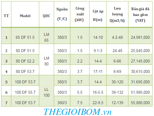 Có lưu lượng cao hơn các dòng máy bơm khác 800l/p, cột áp cũng cao hơn 14m, với công suất 2hp, không bao gồm mặt bích đi kèm, toàn thân được làm bằng gang đúc, chân kiềng hở giúp bơm được các chất thải như rác, sỏi, cát có kích thước không quá 40mm, không thả sâu máy bơm ngập trong nước quá 8m, máy sẽ không hoạt động.