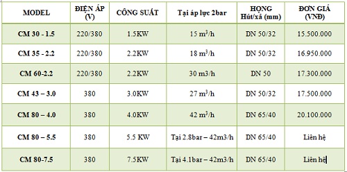 Q (lưu lượng) : từ 06 - 300 m3/h ( cho 01 bơm )