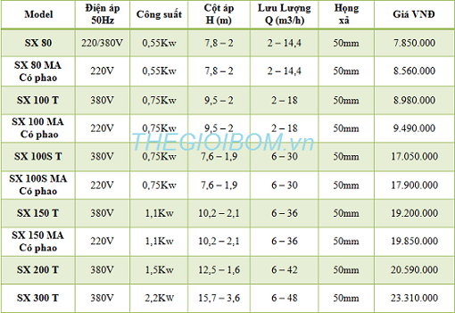 THÔNG SỐ KỸ THUẬT ĐẦU BƠM