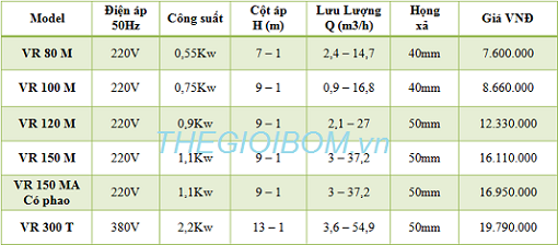 THÔNG SỐ KỸ THUẬT ĐẦU BƠM