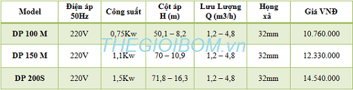 THÔNG SỐ KỸ THUẬT ĐẦU BƠM: