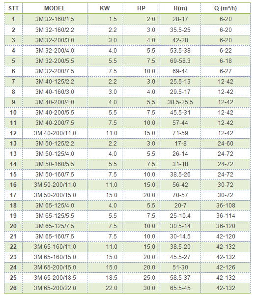 Đặc tính sản phẩm của Máy bơm công nghiệp Howaki-3M Series