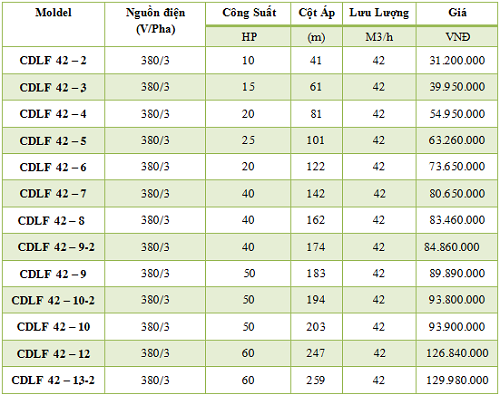 Đặc tính sản phẩm của Máy Bơm trục đứng đa cấp CNP-CDLF-42